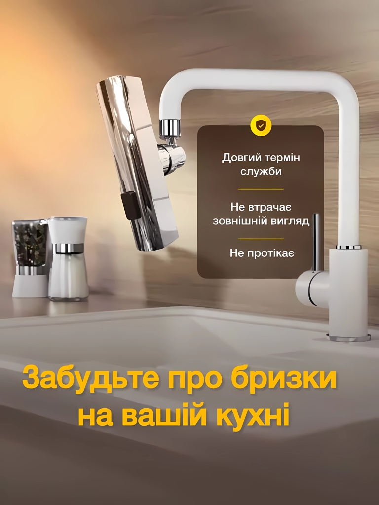 Купував дружині на кухню, користується із задоволенням. Легко перемикати режими, потік води гарний, бризків немає. Однозначно рекомендую.